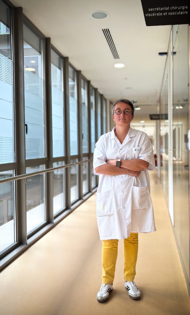 Je suis spécialisée en chirurgie viscérale et digestive. Plus particulièrement, je prends en charge les cancers digestifs du côlon et du rectum, la chirurgie colo-proctologique (les maladies de l’anus et du rectum, ndlr), les prolapsus du rectum, les hernies hiatales complexes (hernies au niveau de l’estomac, ndlr) et la chirurgie de la paroi abdominale, notamment pour les hernies ou éventrations complexes, parfois avec des préparations préopératoires spécifiques.